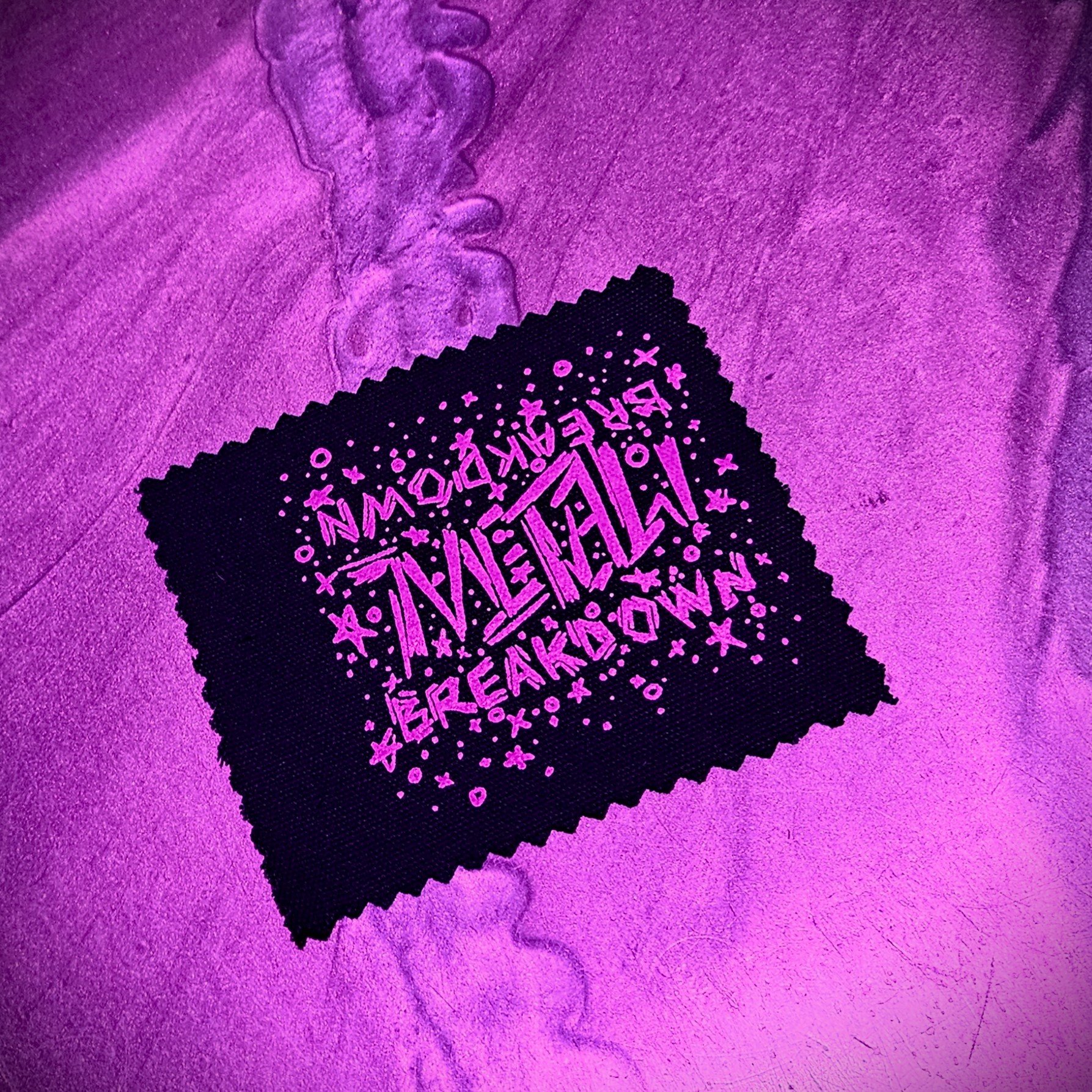 It's time for a BREAKDOWN, but is it metal or mental? In this case it's both! Flip this patch one way to read MENTAL BREAKDOWN or turn it 180 for METAL! BREAKDOWN.