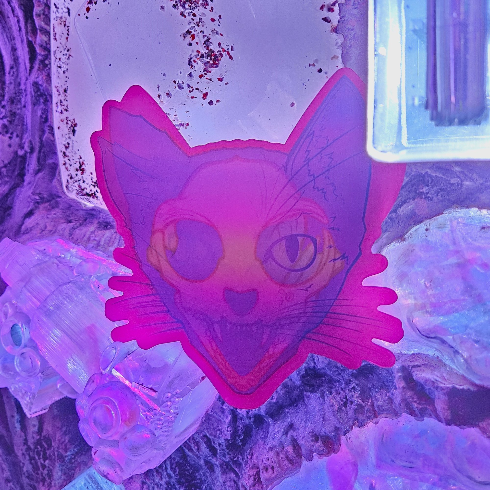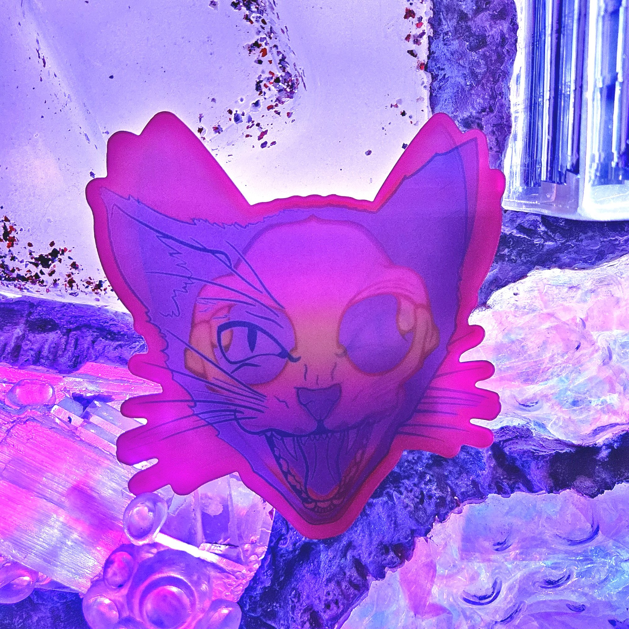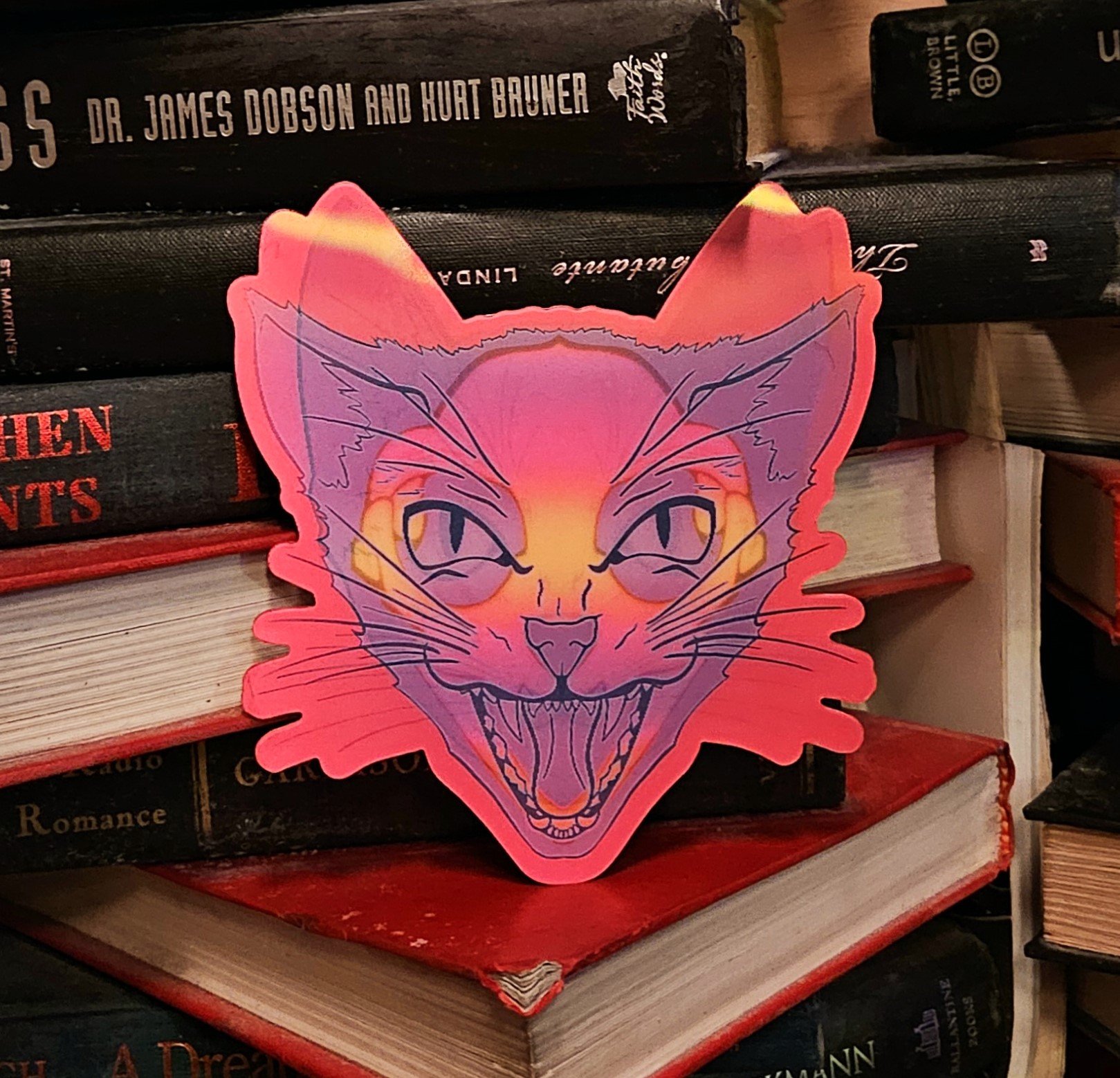 Sticker Details: Horizontal Shifting 4.75x5.25in. / 12.065x13.34cm (Image transitions between Focused, Skull, and Fierce cats)*